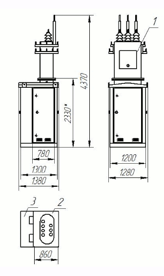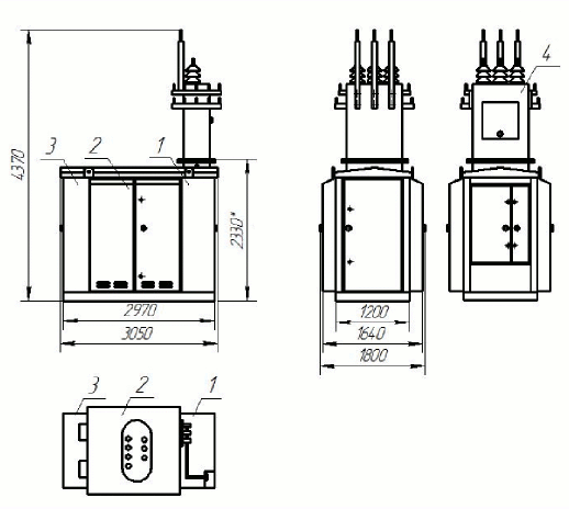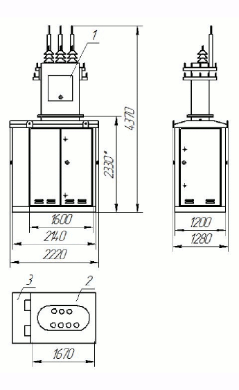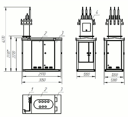 Отсек силового трансформатора допускает установку масляного трансформатора типа ТМ или ТМГ мощностью не более мощности подстанции и габаритными размерами не более: