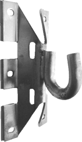Запрокидывание поддерживающего зажима исключено благодаря наличию упора на крюке кронштейна. Фиксация производится с помощью болта с диаметром 14-16мм либо двух полосок механической ленты.