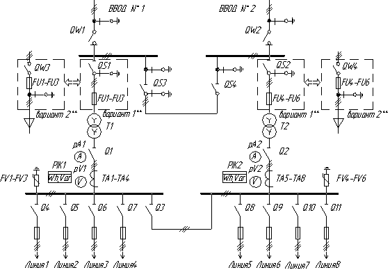 | QS1,QS2 (QW3,QW4) | вариант 1* Разъединитель РВЗ-10/400 | 10 кВ, 400 А | по заказу | |||