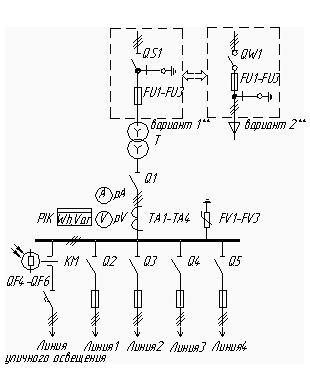 | Q4 | Рубильник с предохранителями РПС, А | 100 | 100 | 250 | 400 | 400 |