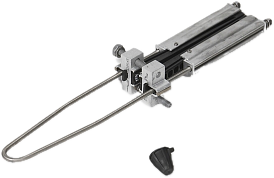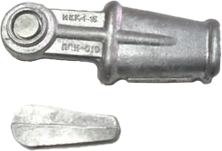 Зажим натяжной НКК-1-1Б используется для крепления стальных канатов сечением от 25 до 86 мм2 и сталеалюминиевых проводов сечением от 10 до 50 мм2 к натяжным подвескам анкерно-угловых опор. При монтаже зажимов клинового типа НКК-1-1Б не нужно разрезать провода. Зажим комплектуется клином, номер которого соответствует диаметру канатов и сечению проводов, применяемых на линии.