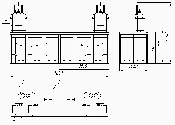 Габаритные размеры 2КТП ПК(В) без секционирования по высокой стороне